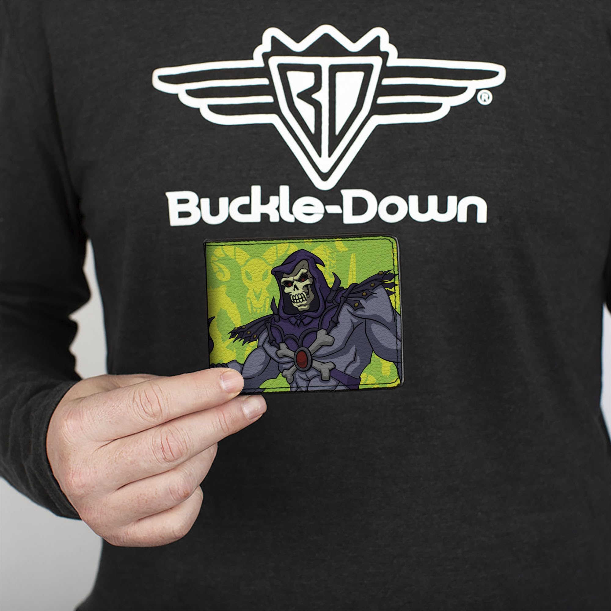 Buckle-Down Masters of the Universe Wallet, Bifold, Masters of the Universe Skeletor Power Sword Pose Greens, Vegan Leather